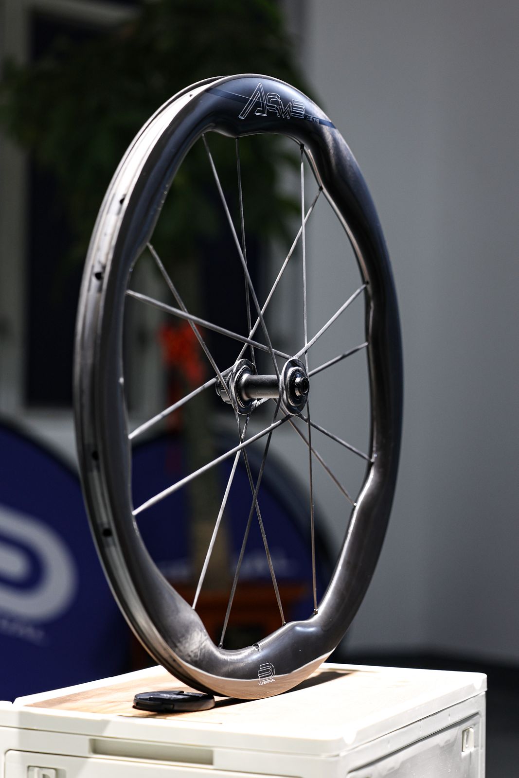 Cette roue repousse les limites technologiques. Notre jante présente les meilleurs résultats en aérodynamisme. Ensuite comment améliorer nos roues Sharp qui ont déjà des rayons en carbone et un poids très contenu ? Nous avons créé un système entre les rayons et le moyeu. Tout est moulé en un seul bloc de carbone.
